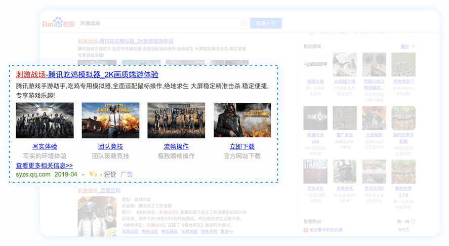 基于全球第一中文搜索引擎百度搜索,在搜索結果顯著的位置展示推廣信息